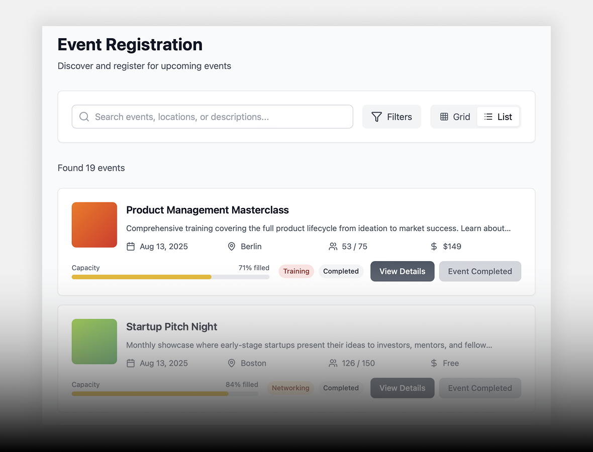 Clean, intuitive applications with forms, tables, dashboards, and charts for efficient data management and visualization.