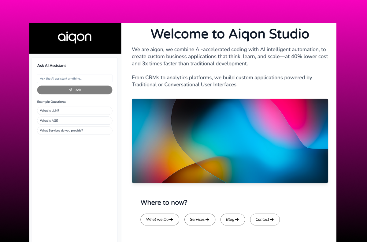 We combine AI-accelerated coding with AI intelligent automation, to create custom business applications that think, learn, and scale—at 40% lower cost than traditional development